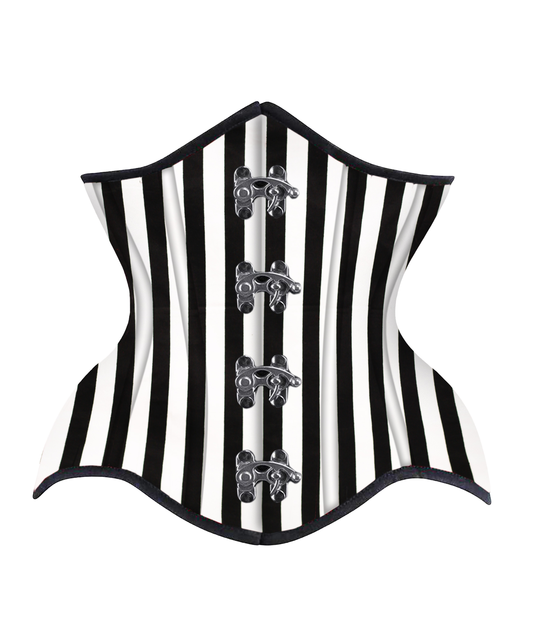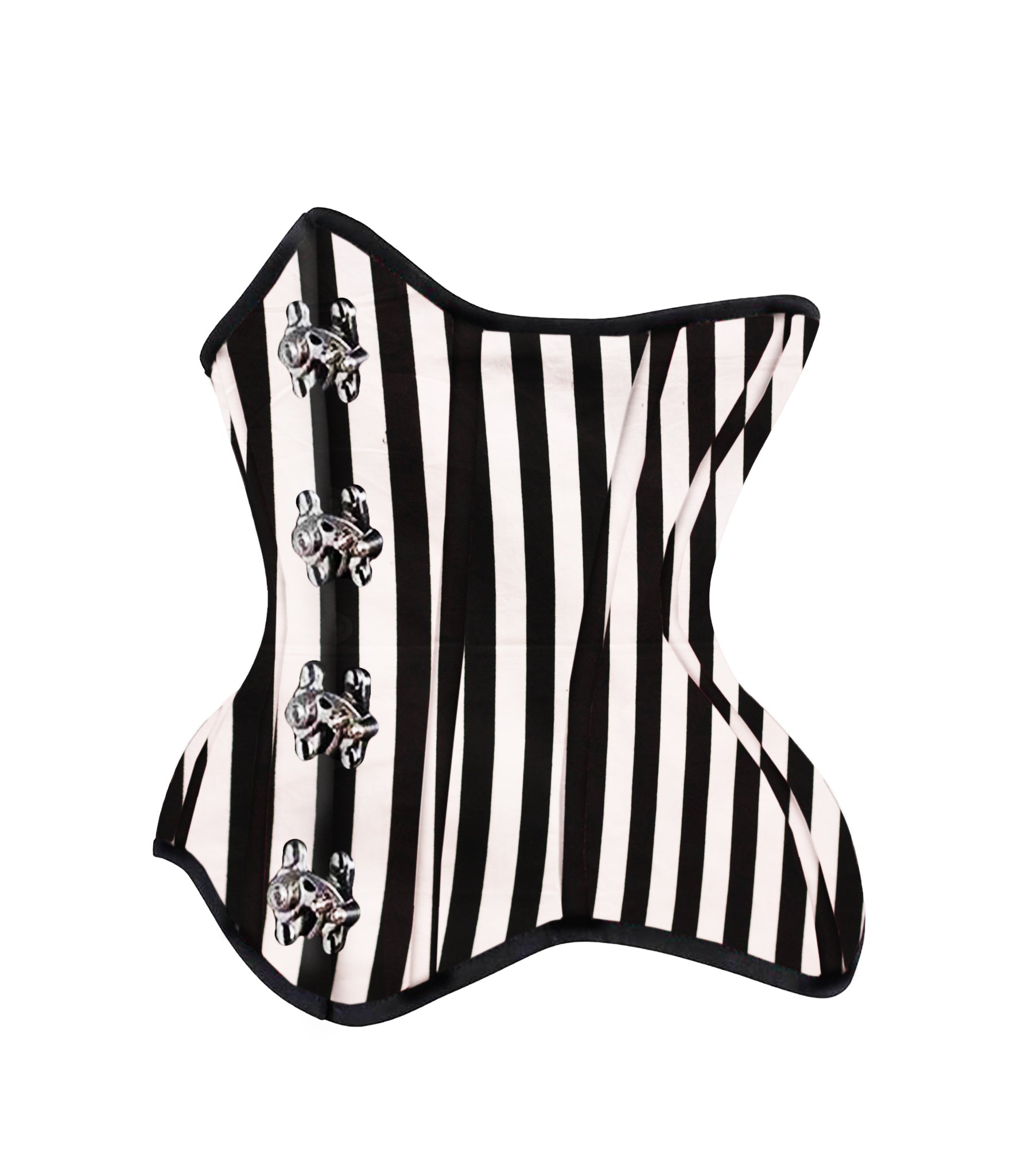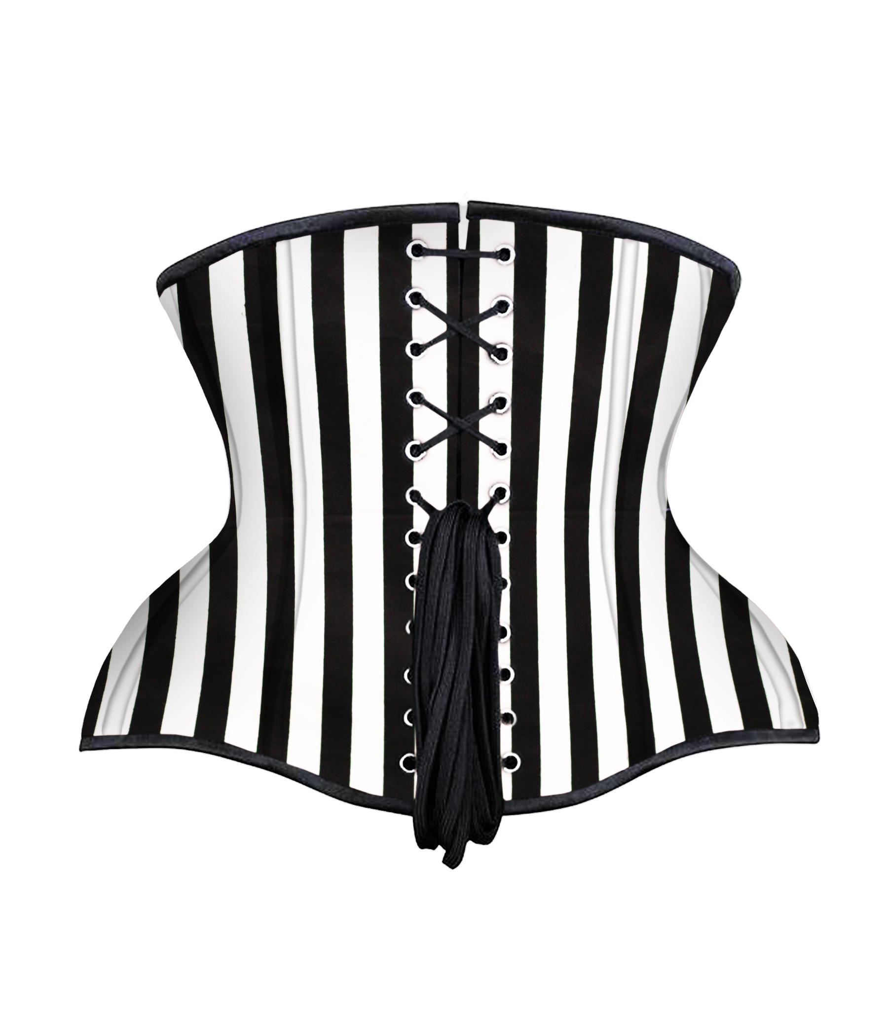 Black White Strip Cotton Authentic Steel Boned Underbust Corset